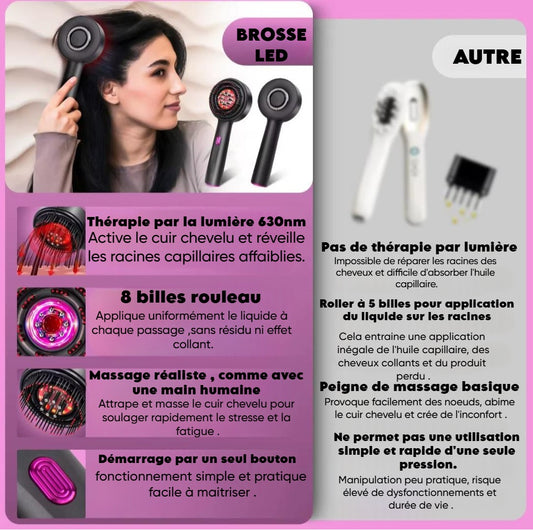 "EDDA : Brosse de Massage pour Capillaire avec Lumière Rouge et Huiles Essentielles au romarin offerte ! .